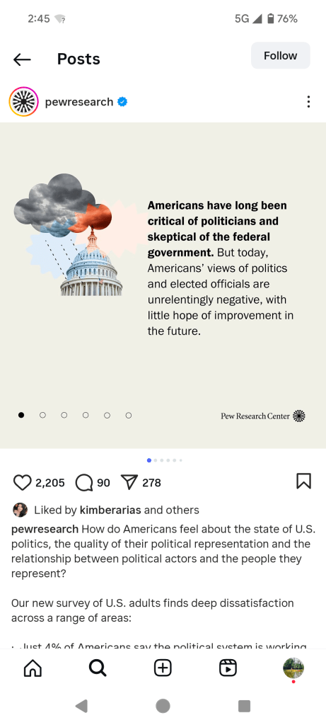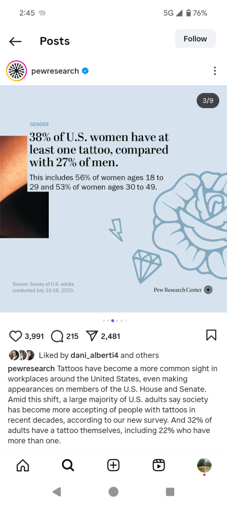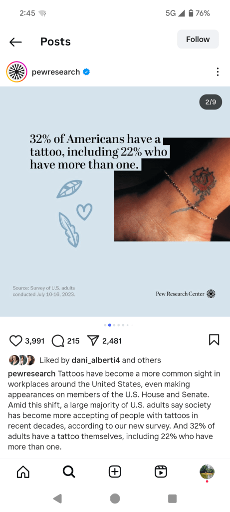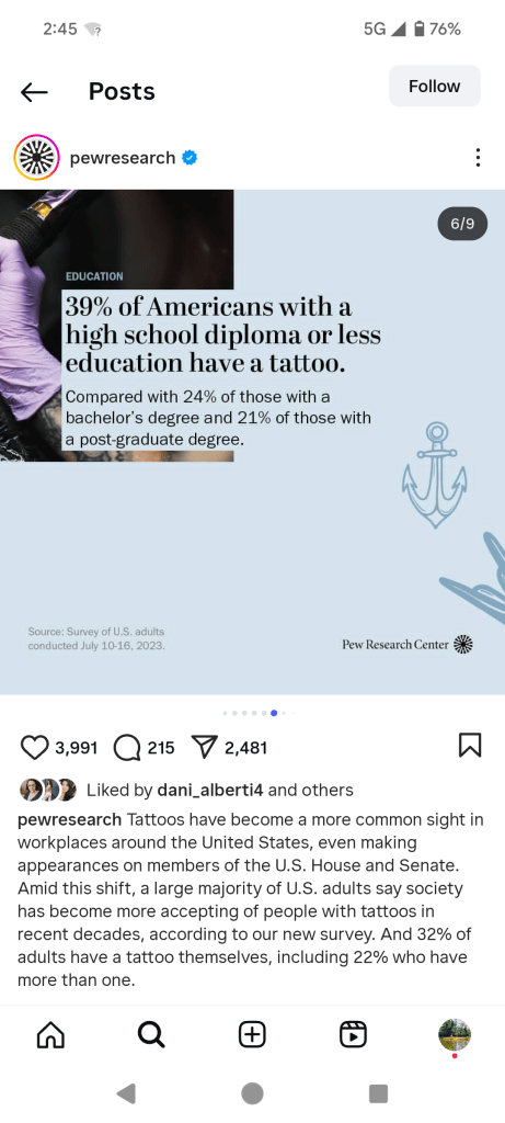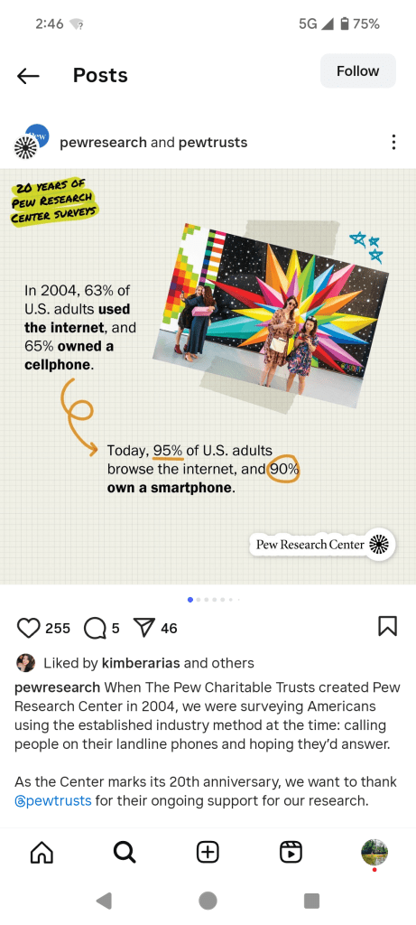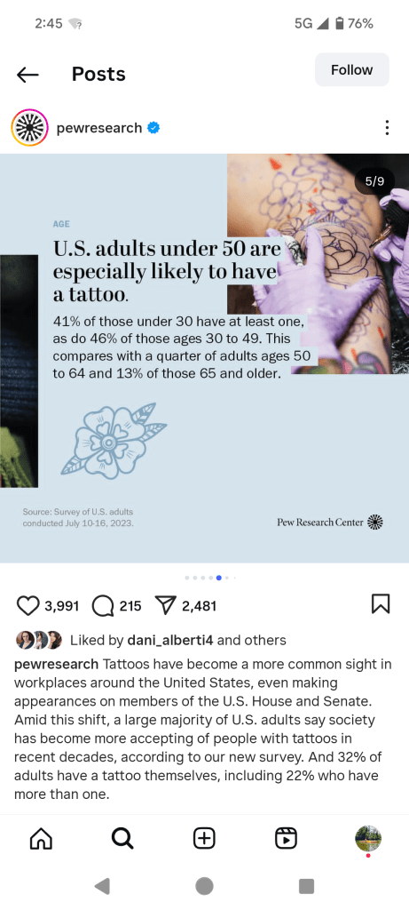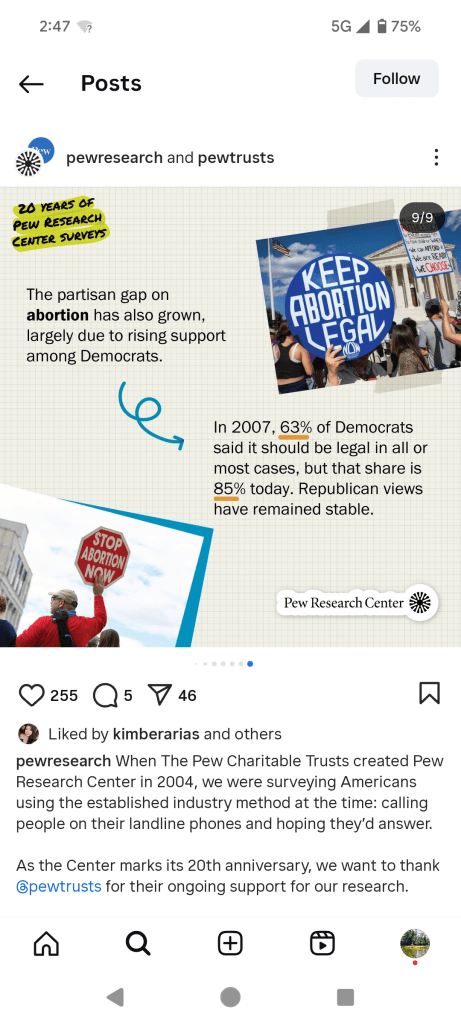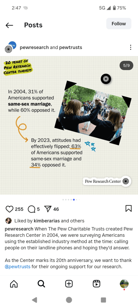 I regularly contribute to @pewresearch on Instagram, working with research and communications colleagues to bring our data to that platform in an engaging, shareable way. Some favorites of mine are below.